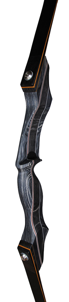 Der Atlas Black von Wild Mountain überzeugt durch sein Design: Durch das ergonomisch geformete Griffstück liegt der Bogen gut in der Hand. Zugleich hat er eine hohe Stabilität, die der Schussruhe zugute kommt. Das Mittelteil ist aus Teknowood gefertigt und mit einem Mycarta Zierstreifen versehen. Abgerundet wird die Optik durch die mit Schwarzglas belegten Bambuswurfarme.