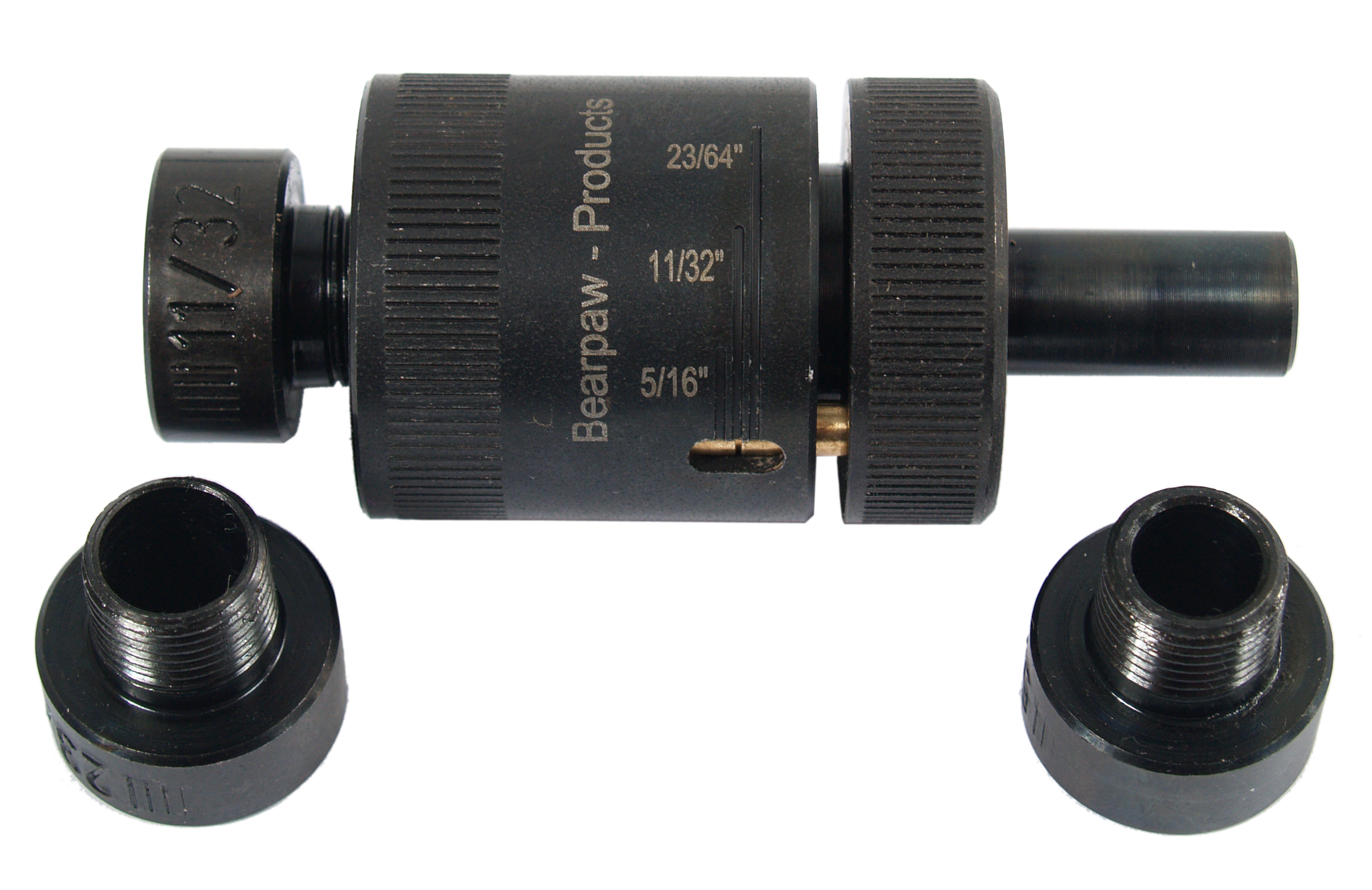 Der Schafter ist mittels einer Rasterfunktion für jeden Schaftdurchmesser einstellbar. Für die Verwendung mit dem Bearpoint Spitzensystem. Der Schafter ist ein Präzisionswerkzeug aus deutscher Fertigung. Der Holzschaft wird auf einer genau definierten Länge auf einen genau festgelegten Durchmesser zusammengepresst und ist nun zu 100 % mit den Bearpoint Spitzen kompatibel.