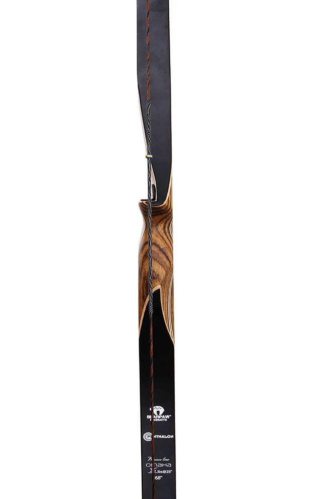 Der Langbogen Penthalon Omaha ist mit seinen 68 Zoll extrem komfortabel und gleichzeitig leistungsstark. Neben seinem weichen Auszugsverhalten überzeugt dieser Langbogen aus der Penthalon Premium Line durch seine tolle Optik: die Wurfarme sind mit Bearpaw Powerglas in Pure Black belegt und setzen einen attraktiven Kontrast zur schönen Holzkombination im Mittelteil.