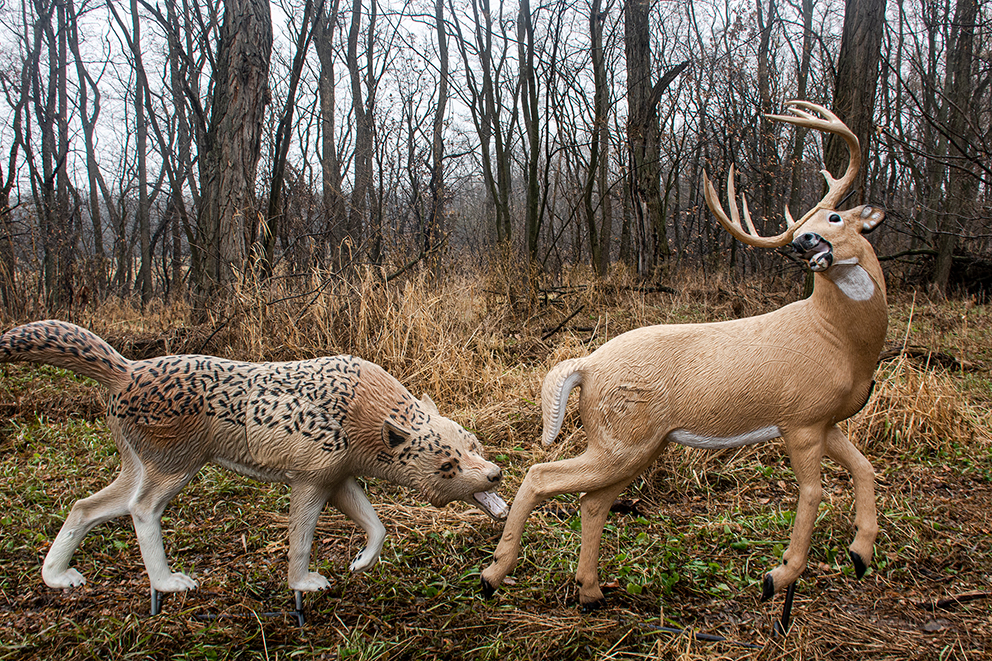 Ein angriffslustiger Wolf - der besonders eindrucksvoll in Kombination mit dem tretenden Hirsch von Reinhart in Szene gesetzt werden kann. Die amerikanische Firma Rinehart Targets bietet naturgetreu gestaltete 3D-Tiere in langlebiger Qualität. Eine Besonderheit ist die patentierte, auswechselbare Killzone (Target Insert) und der besonders widerstandsfähige und selbstheilende Schaum, der für die 3D-Tiere verwendet wird. Das Material übersteht sogar extremste Belastungstests (siehe Artikelbilder), das Pfeileziehen ist mühelos und der Schaum schließt sich innerhalb von 10 Sekunden selbst. Der angreifende 3D- Wolf von Rinehart ist hochwertig verarbeitet und liebevoll bemalt.