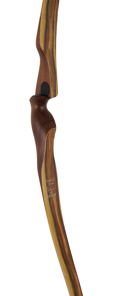 Der Wacin ist ein handlicher Jagdrecurve in klarem, zeitlosen Design. Das Griffstück in Nussbaum kommt mit dem kontrastfarbenen Apfelfurnier perfekt zur Geltung.